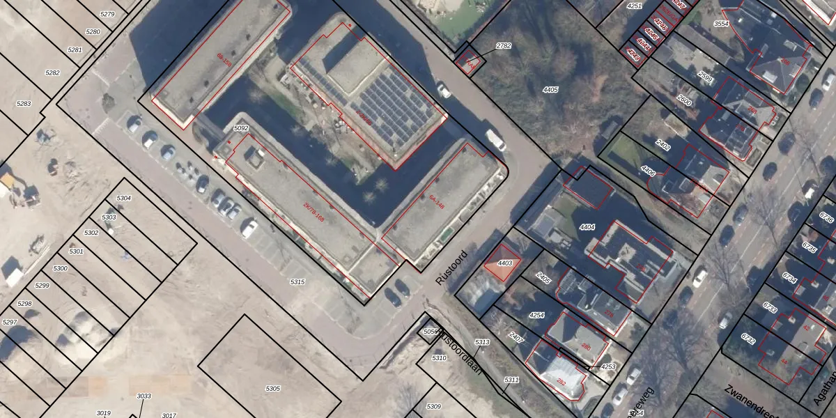 Het perceel waarop Rustoord 114 staat heeft een oppervlakte van 3705 m². Dit is een zeer groot perceel. De perceeloppervlakte wordt geregistreerd door het Kadaster. Gedetailleerde informatie over de maten van dit perceel kunt u vinden in het rapport Kadastrale kaart met maatvoering van Rustoord 114.