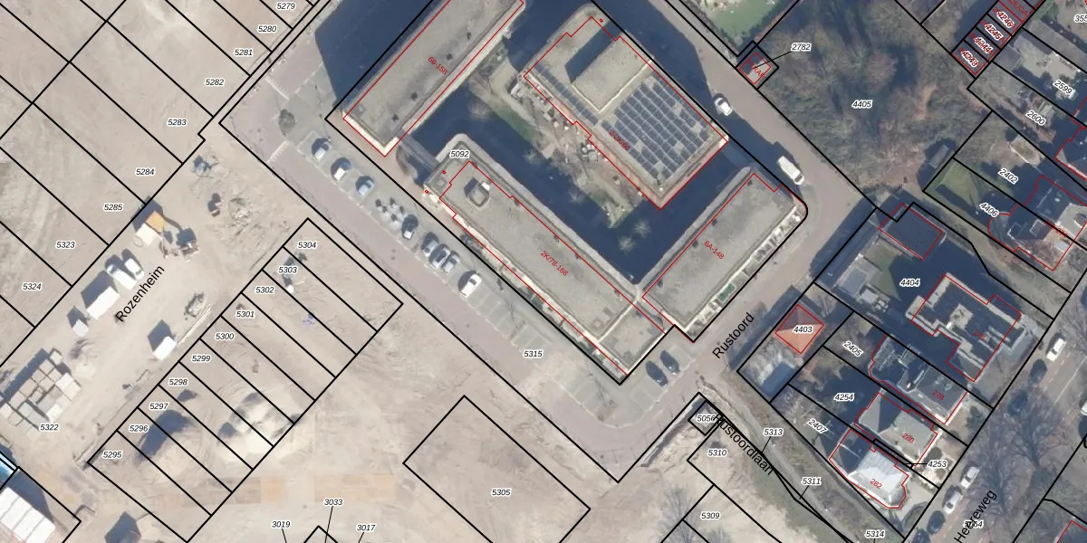 Het perceel waarop Rustoord 134 staat heeft een oppervlakte van 3705 m². Dit is een zeer groot perceel. De perceeloppervlakte wordt geregistreerd door het Kadaster. Gedetailleerde informatie over de maten van dit perceel kunt u vinden in het rapport Kadastrale kaart met maatvoering van Rustoord 134.