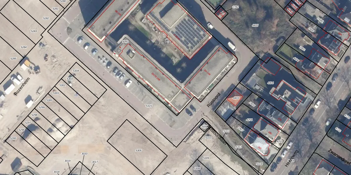 Het perceel waarop Rustoord 88 staat heeft een oppervlakte van 3705 m². Dit is een zeer groot perceel. De perceeloppervlakte wordt geregistreerd door het Kadaster. Gedetailleerde informatie over de maten van dit perceel kunt u vinden in het rapport Kadastrale kaart met maatvoering van Rustoord 88.
