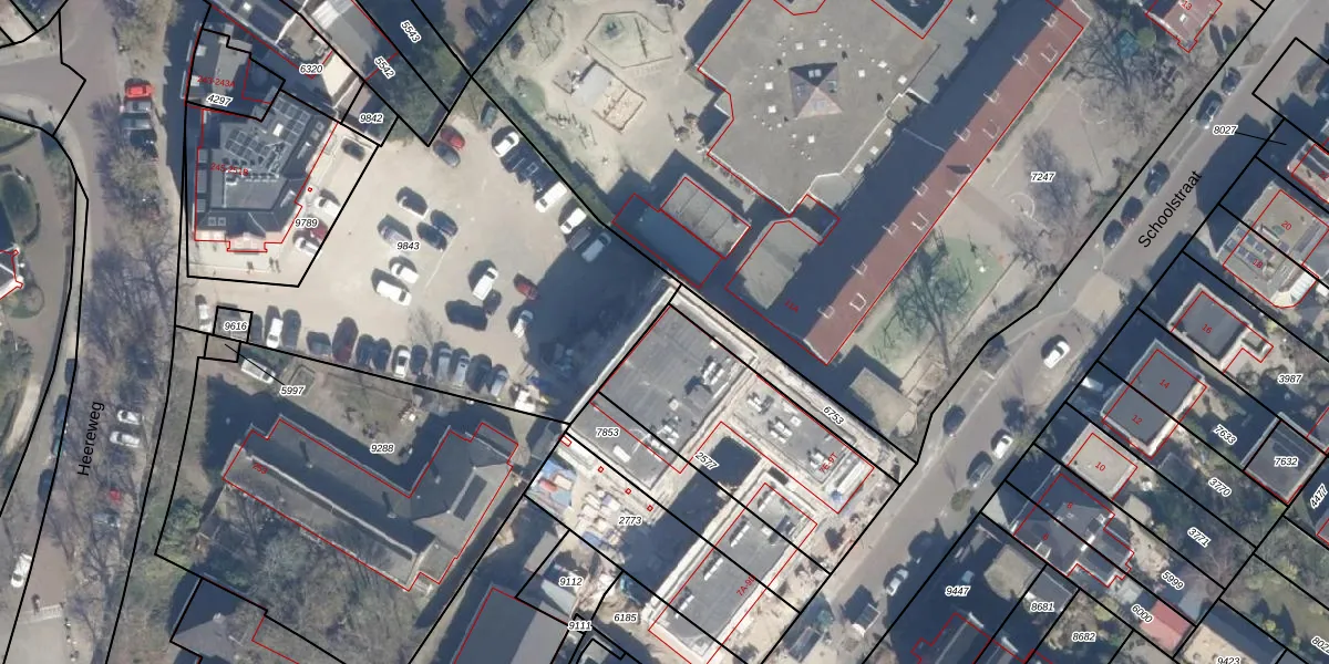 Het perceel waarop Schoolstraat 9-L staat heeft een oppervlakte van 753 m². Dit is een groot perceel. De perceeloppervlakte wordt geregistreerd door het Kadaster. Gedetailleerde informatie over de maten van dit perceel kunt u vinden in het rapport Kadastrale kaart met maatvoering van Schoolstraat 9-L.