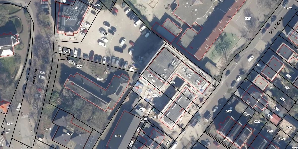 Het perceel waarop Schoolstraat 9-T staat heeft een oppervlakte van 349 m². Dit is een groot perceel. De perceeloppervlakte wordt geregistreerd door het Kadaster. Gedetailleerde informatie over de maten van dit perceel kunt u vinden in het rapport Kadastrale kaart met maatvoering van Schoolstraat 9-T.