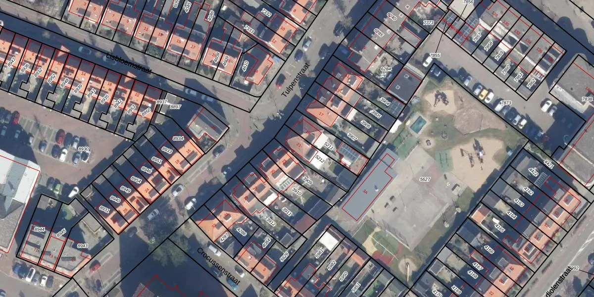 Tulpenstraat 21 is gelegen op kadastraal perceel LSE00D5212. Deze kadastrale aanduiding is uniek en wordt gebruikt door het Kadaster om eigendomsrechten en andere zakelijke rechten vast te leggen. Het perceel maakt onderdeel uit van de kadastrale gemeente Lisse.