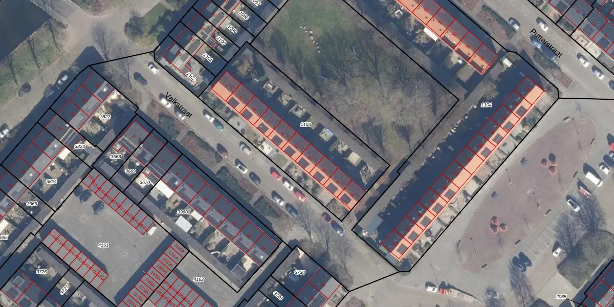 Het perceel waarop Valkstraat 13 staat heeft een oppervlakte van 1493 m². Dit is een zeer groot perceel. De perceeloppervlakte wordt geregistreerd door het Kadaster. Gedetailleerde informatie over de maten van dit perceel kunt u vinden in het rapport Kadastrale kaart met maatvoering van Valkstraat 13.