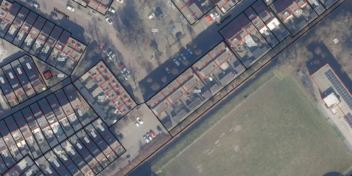 Het perceel waarop Voerman 108 staat heeft een oppervlakte van 1235 m². Dit is een zeer groot perceel. De perceeloppervlakte wordt geregistreerd door het Kadaster. Gedetailleerde informatie over de maten van dit perceel kunt u vinden in het rapport Kadastrale kaart met maatvoering van Voerman 108.