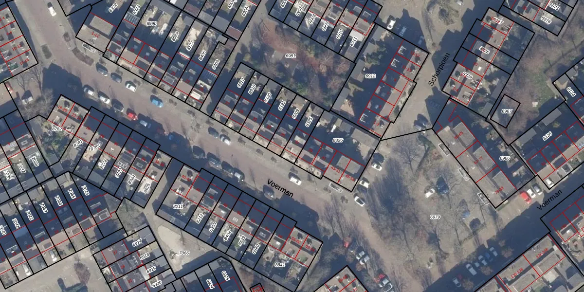 Gebruik de zoekbalk of klik op een perceel voor informatie over de adressen binnen dit perceel.