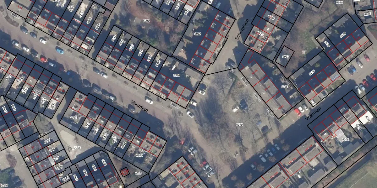 Het perceel waarop Voerman 53 staat heeft een oppervlakte van 470 m². Dit is een groot perceel. De perceeloppervlakte wordt geregistreerd door het Kadaster. Gedetailleerde informatie over de maten van dit perceel kunt u vinden in het rapport Kadastrale kaart met maatvoering van Voerman 53.