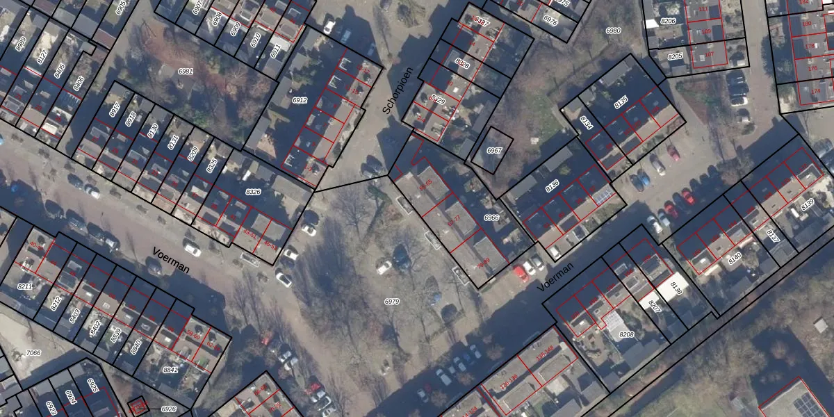 Het perceel waarop Voerman 57 staat heeft een oppervlakte van 615 m². Dit is een groot perceel. De perceeloppervlakte wordt geregistreerd door het Kadaster. Gedetailleerde informatie over de maten van dit perceel kunt u vinden in het rapport Kadastrale kaart met maatvoering van Voerman 57.
