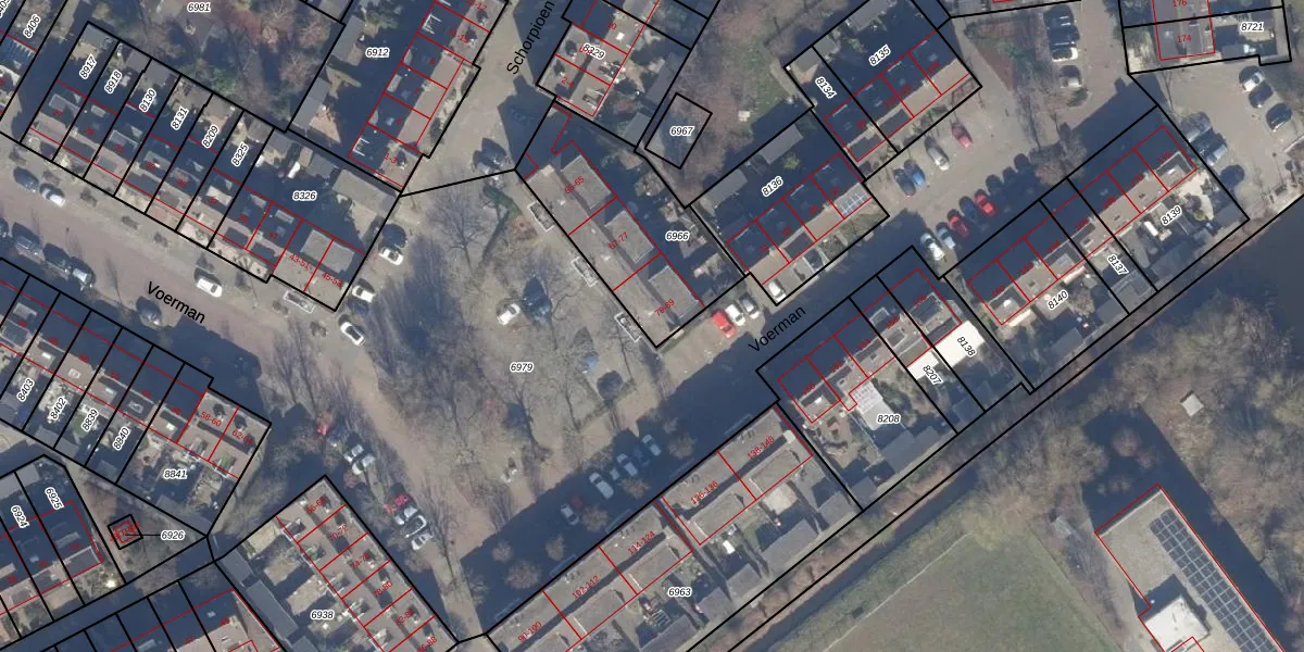 Het perceel waarop Voerman 81 staat heeft een oppervlakte van 615 m². Dit is een groot perceel. De perceeloppervlakte wordt geregistreerd door het Kadaster. Gedetailleerde informatie over de maten van dit perceel kunt u vinden in het rapport Kadastrale kaart met maatvoering van Voerman 81.