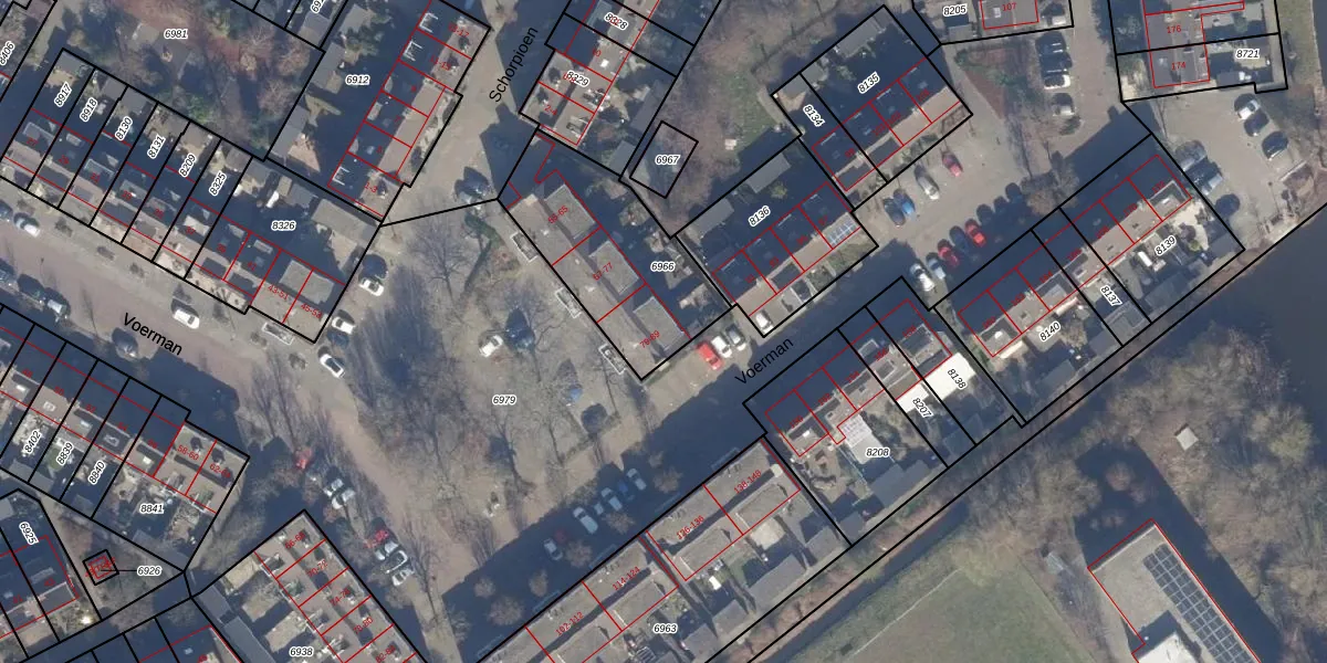 Het perceel waarop Voerman 89 staat heeft een oppervlakte van 615 m². Dit is een groot perceel. De perceeloppervlakte wordt geregistreerd door het Kadaster. Gedetailleerde informatie over de maten van dit perceel kunt u vinden in het rapport Kadastrale kaart met maatvoering van Voerman 89.