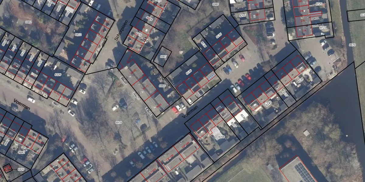 Het perceel waarop Voerman 91 staat heeft een oppervlakte van 475 m². Dit is een groot perceel. De perceeloppervlakte wordt geregistreerd door het Kadaster. Gedetailleerde informatie over de maten van dit perceel kunt u vinden in het rapport Kadastrale kaart met maatvoering van Voerman 91.