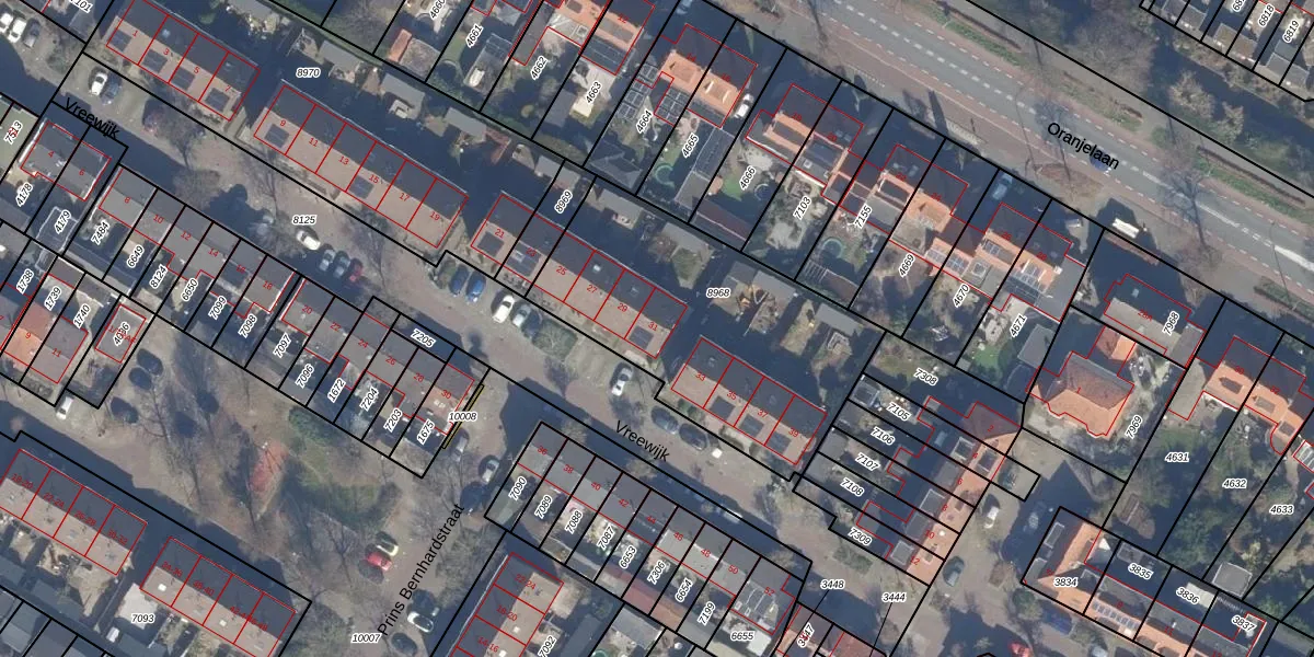 Het perceel waarop Vreewijk 31 staat heeft een oppervlakte van 1278 m². Dit is een zeer groot perceel. De perceeloppervlakte wordt geregistreerd door het Kadaster. Gedetailleerde informatie over de maten van dit perceel kunt u vinden in het rapport Kadastrale kaart met maatvoering van Vreewijk 31.