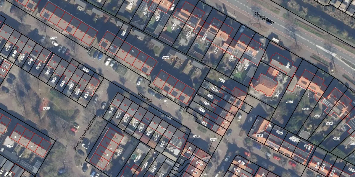 Het perceel waarop Vreewijk 37 staat heeft een oppervlakte van 1278 m². Dit is een zeer groot perceel. De perceeloppervlakte wordt geregistreerd door het Kadaster. Gedetailleerde informatie over de maten van dit perceel kunt u vinden in het rapport Kadastrale kaart met maatvoering van Vreewijk 37.
