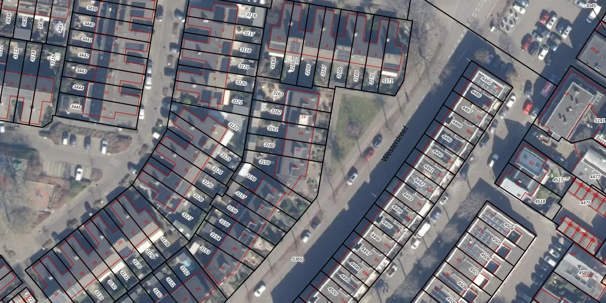 Gebruik de zoekbalk of klik op een perceel voor informatie over de adressen binnen dit perceel.