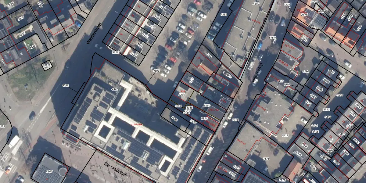Gebruik de zoekbalk of klik op een perceel voor informatie over de adressen binnen dit perceel.