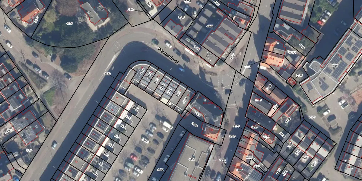 Gebruik de zoekbalk of klik op een perceel voor informatie over de adressen binnen dit perceel.