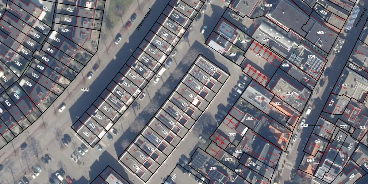 Gebruik de zoekbalk of klik op een perceel voor informatie over de adressen binnen dit perceel.