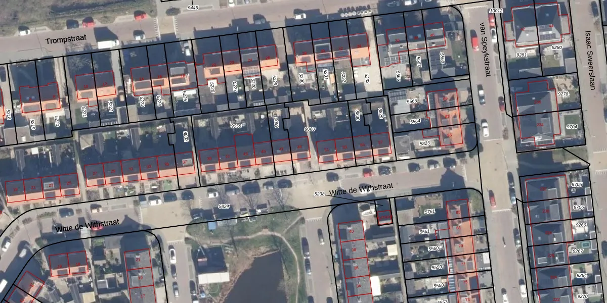 Het perceel waarop Witte de Withstraat 49 staat heeft een oppervlakte van 470 m². Dit is een groot perceel. De perceeloppervlakte wordt geregistreerd door het Kadaster. Gedetailleerde informatie over de maten van dit perceel kunt u vinden in het rapport Kadastrale kaart met maatvoering van Witte de Withstraat 49.