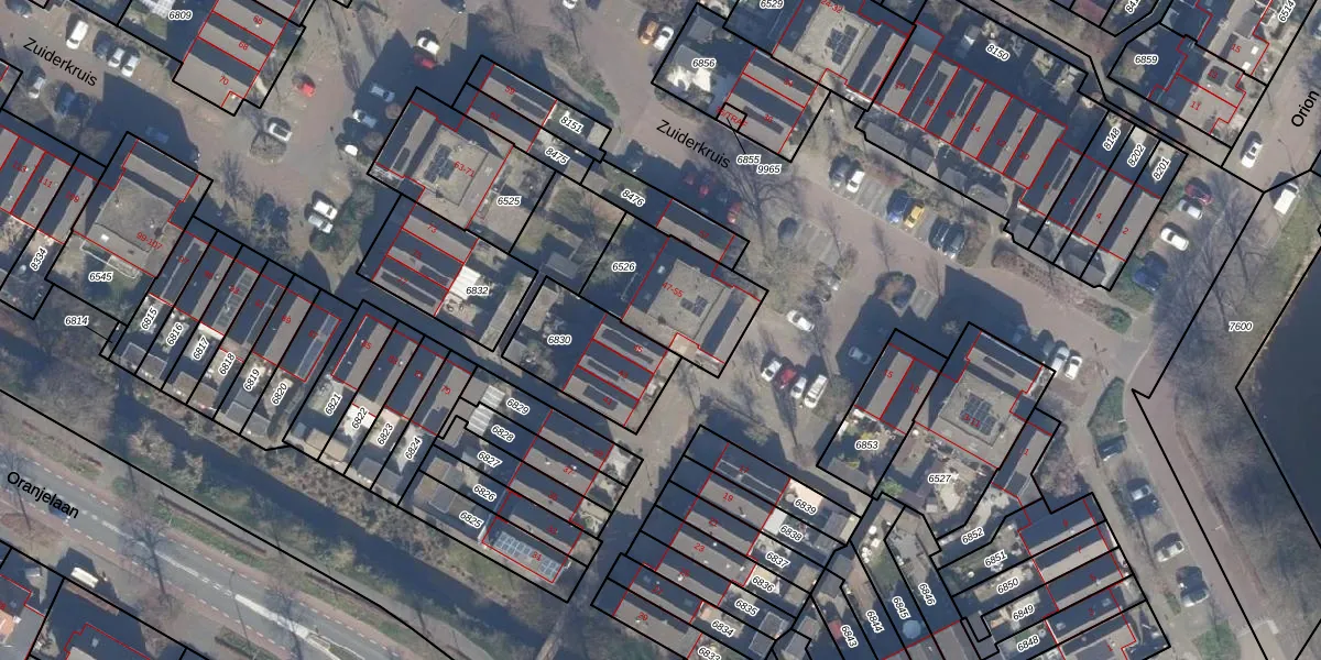 Het perceel waarop Zuiderkruis 47 staat heeft een oppervlakte van 366 m². Dit is een groot perceel. De perceeloppervlakte wordt geregistreerd door het Kadaster. Gedetailleerde informatie over de maten van dit perceel kunt u vinden in het rapport Kadastrale kaart met maatvoering van Zuiderkruis 47.