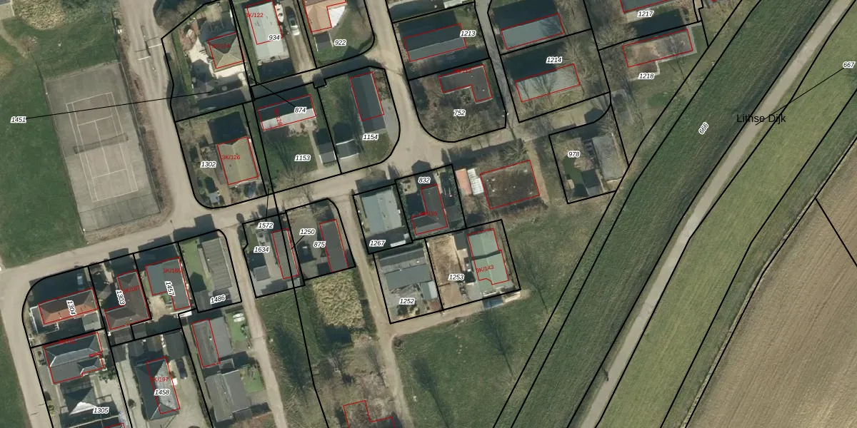 Het adres is gelegen op perceel 832 in de sectie F en de kadastrale gemeente Lith. De kadastrale aanduiding is aldus LIT00-F-832. De gemiddelde perceelgrootte in Lith is 1,1 ha. Dit perceel is kleiner: de perceeloppervlakte bedraagt 202 m². De grootste perceeloppervlakte in de kadastrale gemeente is 1,30 km². De kleinste oppervlakte bedraagt 1 m². Dit is het enige adres dat aanwezig is op het perceel. In de Basisregistratie Kadaster (BRK) werden de grenzen van het perceel geregistreerd op 09-09-2025.