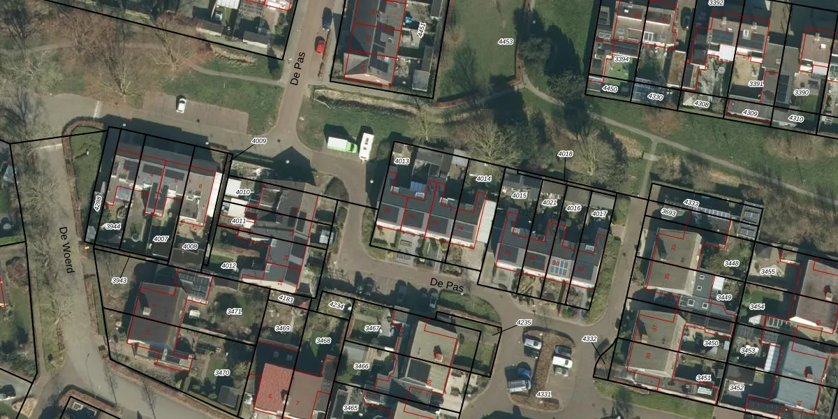 Het perceel waarop De Pas 20 staat heeft een oppervlakte van 466 m². Dit is een groot perceel. De perceeloppervlakte wordt geregistreerd door het Kadaster. Gedetailleerde informatie over de maten van dit perceel kunt u vinden in het rapport Kadastrale kaart met maatvoering van De Pas 20.