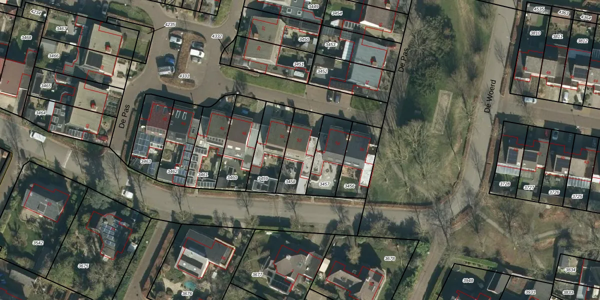 Het perceel waarop De Pas 52 staat heeft een oppervlakte van 277 m². Dit is een middelgroot perceel. De perceeloppervlakte wordt geregistreerd door het Kadaster. Gedetailleerde informatie over de maten van dit perceel kunt u vinden in het rapport Kadastrale kaart met maatvoering van De Pas 52.