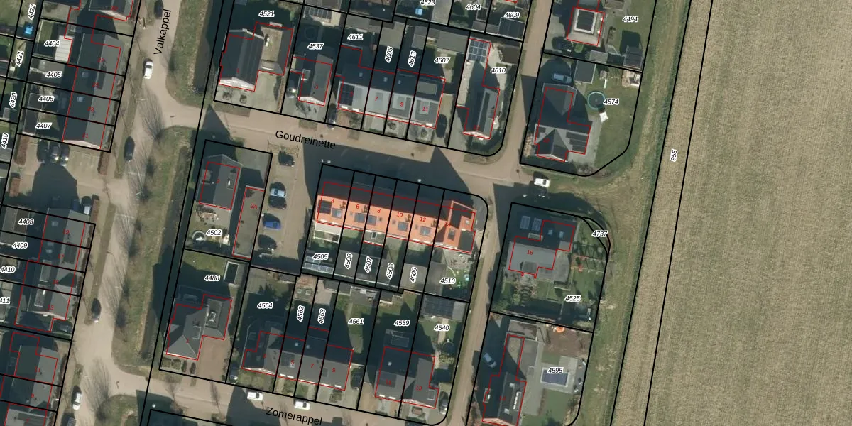 Het perceel waarop Goudreinette 12 staat heeft een oppervlakte van 151 m². Dit is een middelgroot perceel. De perceeloppervlakte wordt geregistreerd door het Kadaster. Gedetailleerde informatie over de maten van dit perceel kunt u vinden in het rapport Kadastrale kaart met maatvoering van Goudreinette 12.