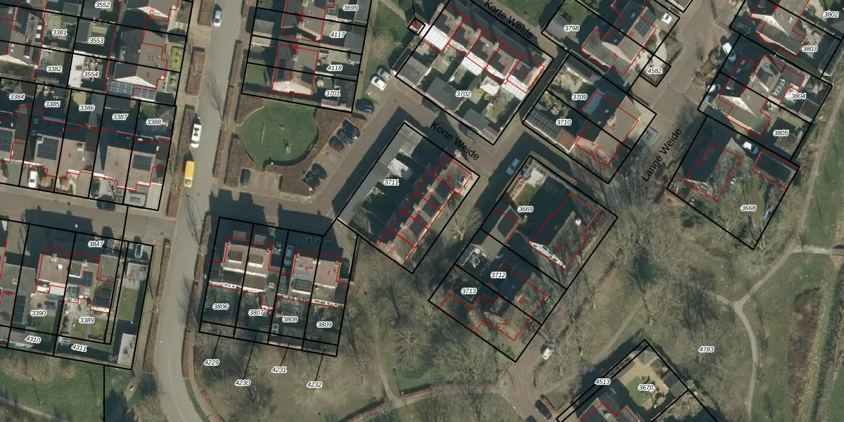 Korte Weide 14 is gelegen op kadastraal perceel LIT00A3711. Deze kadastrale aanduiding is uniek en wordt gebruikt door het Kadaster om eigendomsrechten en andere zakelijke rechten vast te leggen. Het perceel maakt onderdeel uit van de kadastrale gemeente Lith.