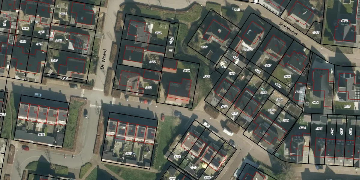 Gebruik de zoekbalk of klik op een perceel voor informatie over de adressen binnen dit perceel.