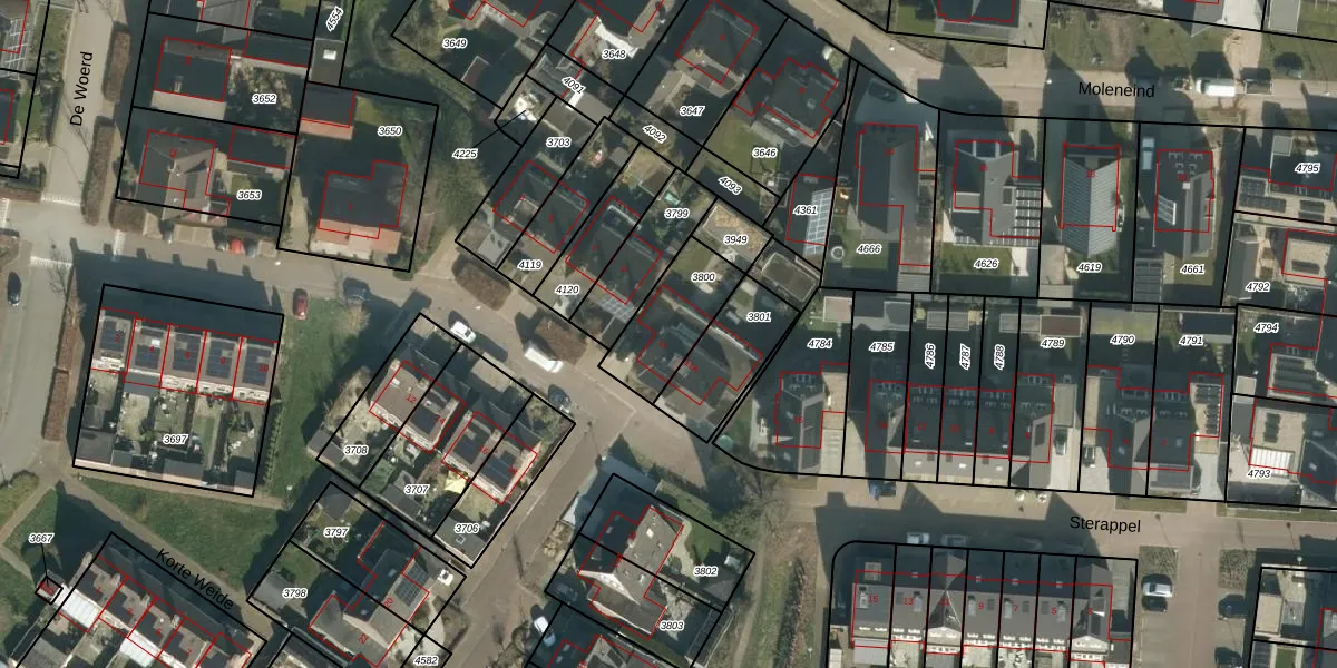 Gebruik de zoekbalk of klik op een perceel voor informatie over de adressen binnen dit perceel.