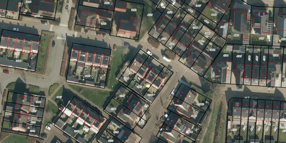 Het perceel waarop Lange Weide 14 staat heeft een oppervlakte van 351 m². Dit is een groot perceel. De perceeloppervlakte wordt geregistreerd door het Kadaster. Gedetailleerde informatie over de maten van dit perceel kunt u vinden in het rapport Kadastrale kaart met maatvoering van Lange Weide 14.