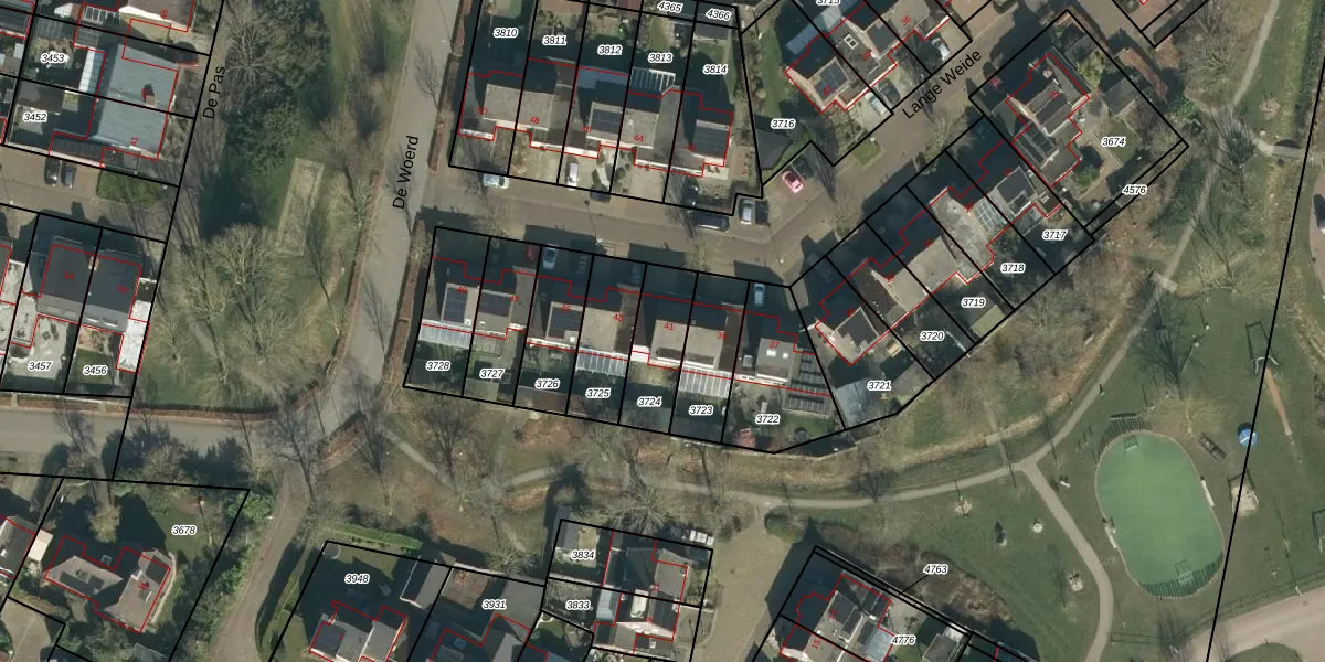 Gebruik de zoekbalk of klik op een perceel voor informatie over de adressen binnen dit perceel.