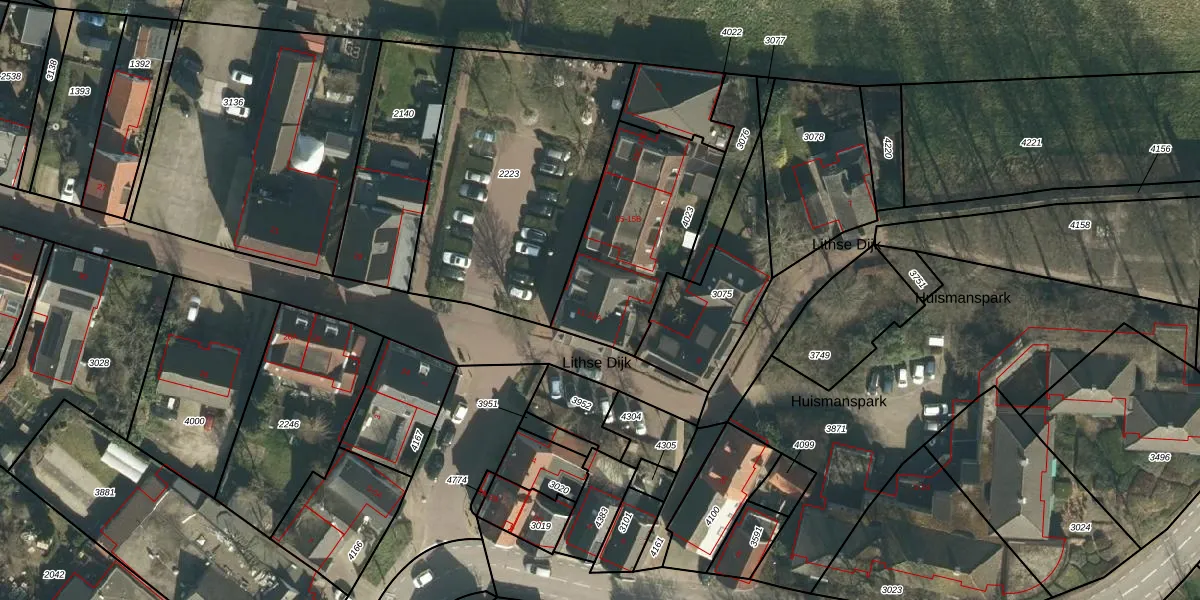 Lithse Dijk 13 is gelegen op kadastraal perceel LIT00A4023. Deze kadastrale aanduiding is uniek en wordt gebruikt door het Kadaster om eigendomsrechten en andere zakelijke rechten vast te leggen. Het perceel maakt onderdeel uit van de kadastrale gemeente Lith.