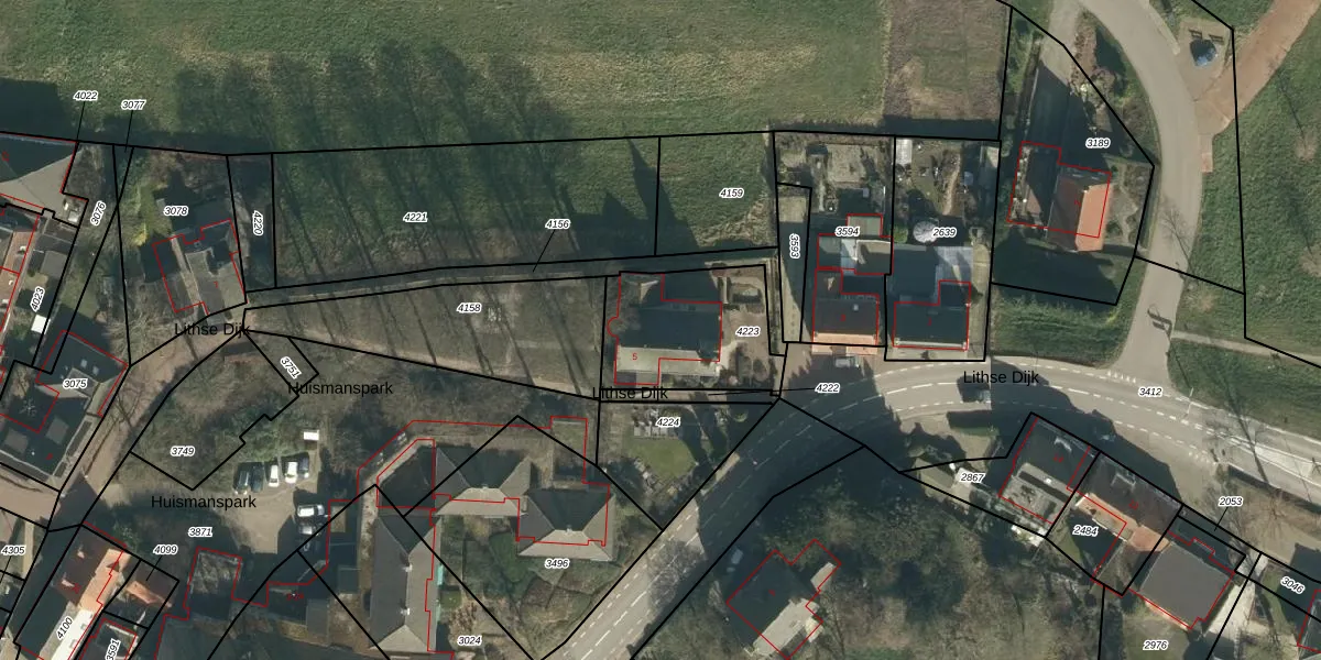 Lithse Dijk 5 is gelegen op kadastraal perceel LIT00A4223. Deze kadastrale aanduiding is uniek en wordt gebruikt door het Kadaster om eigendomsrechten en andere zakelijke rechten vast te leggen. Het perceel maakt onderdeel uit van de kadastrale gemeente Lith.