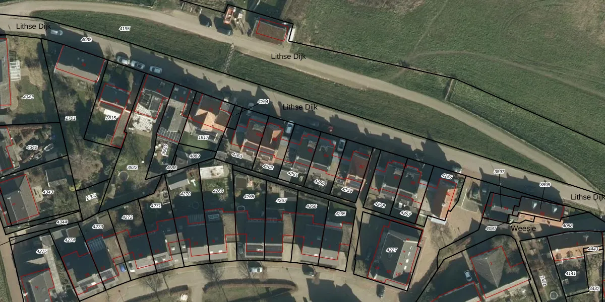 Lithse Dijk 66 is gelegen op kadastraal perceel LIT00A4261. Deze kadastrale aanduiding is uniek en wordt gebruikt door het Kadaster om eigendomsrechten en andere zakelijke rechten vast te leggen. Het perceel maakt onderdeel uit van de kadastrale gemeente Lith.