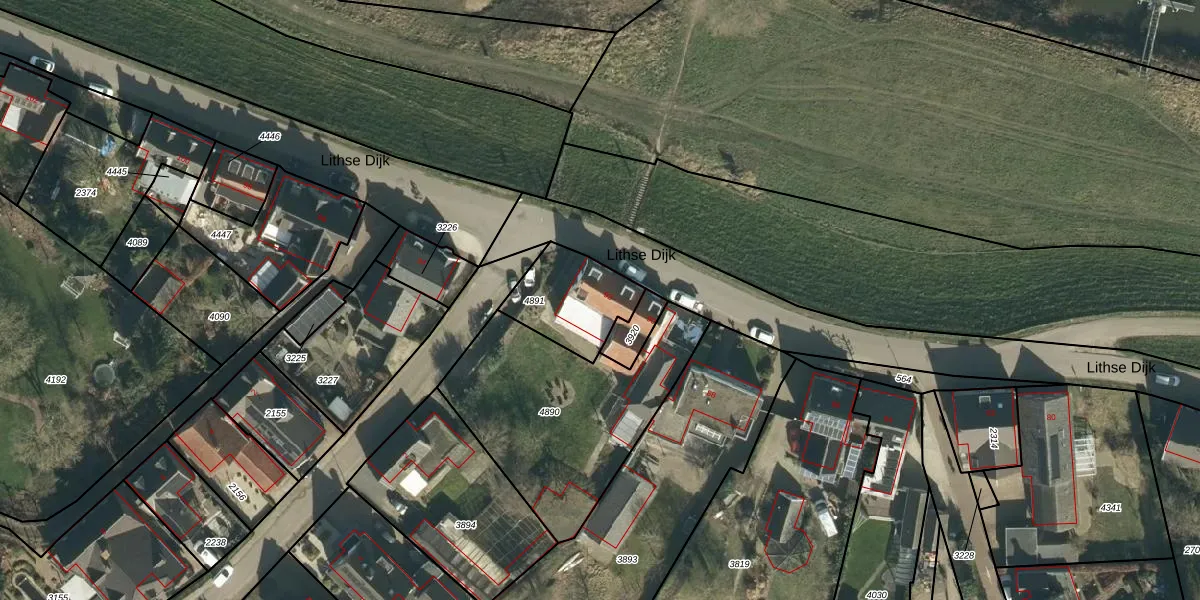 Lithse Dijk 92 is gelegen op kadastraal perceel LIT00A4891. Deze kadastrale aanduiding is uniek en wordt gebruikt door het Kadaster om eigendomsrechten en andere zakelijke rechten vast te leggen. Het perceel maakt onderdeel uit van de kadastrale gemeente Lith.