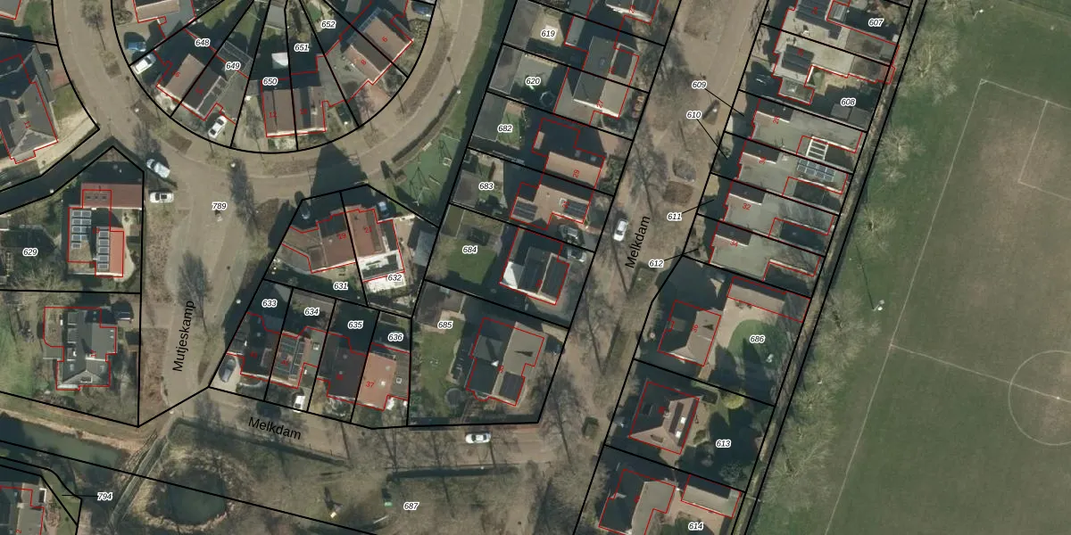 Melkdam 33 is gelegen op kadastraal perceel LIT00G684. Deze kadastrale aanduiding is uniek en wordt gebruikt door het Kadaster om eigendomsrechten en andere zakelijke rechten vast te leggen. Het perceel maakt onderdeel uit van de kadastrale gemeente Lith.