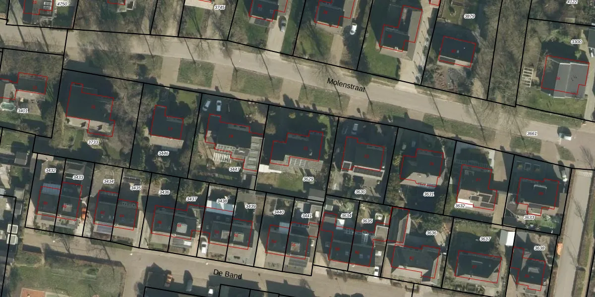 Het perceel waarop Molenstraat 21 staat heeft een oppervlakte van 714 m². Dit is een groot perceel. De perceeloppervlakte wordt geregistreerd door het Kadaster. Gedetailleerde informatie over de maten van dit perceel kunt u vinden in het rapport Kadastrale kaart met maatvoering van Molenstraat 21.