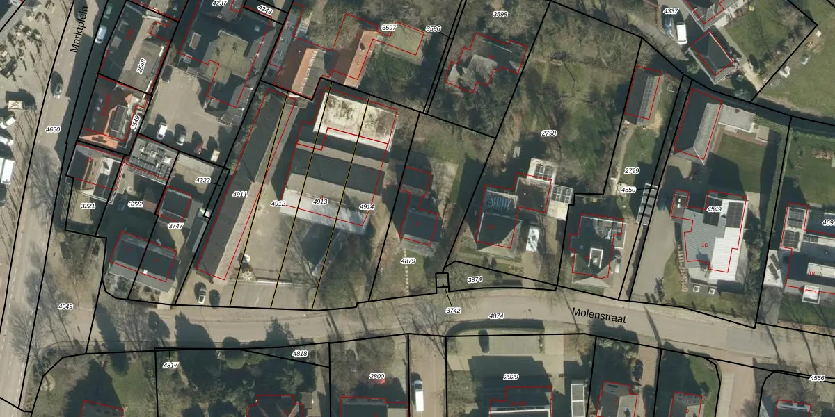 Het perceel waarop Molenstraat 8 staat heeft een oppervlakte van 733 m². Dit is een groot perceel. De perceeloppervlakte wordt geregistreerd door het Kadaster. Gedetailleerde informatie over de maten van dit perceel kunt u vinden in het rapport Kadastrale kaart met maatvoering van Molenstraat 8.