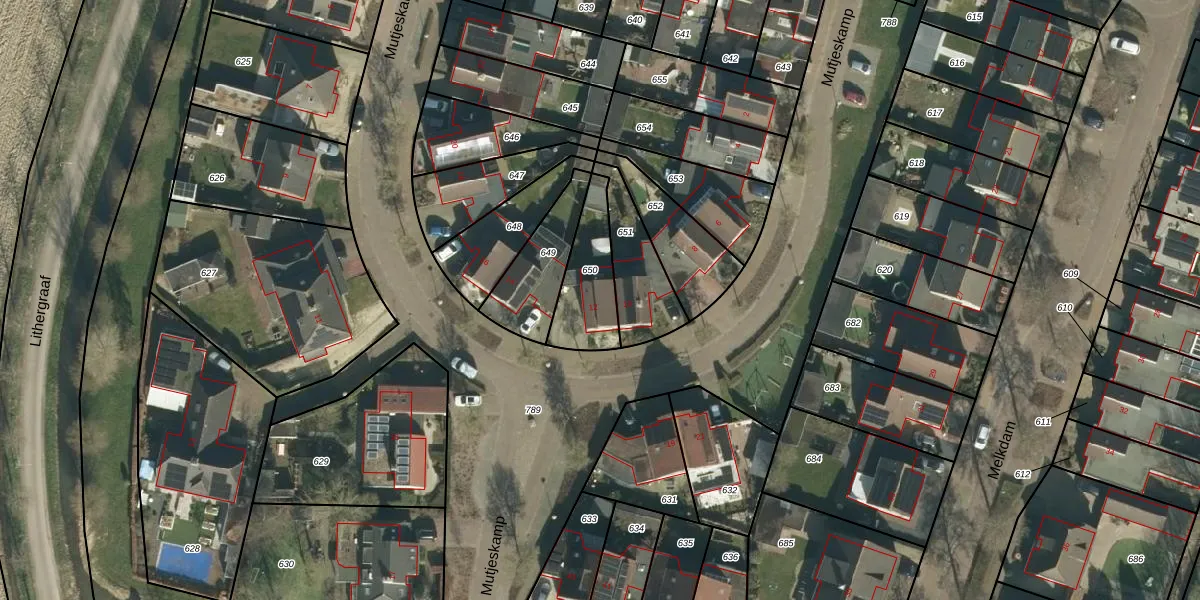 Mutjeskamp 12 is gelegen op kadastraal perceel LIT00G650. Deze kadastrale aanduiding is uniek en wordt gebruikt door het Kadaster om eigendomsrechten en andere zakelijke rechten vast te leggen. Het perceel maakt onderdeel uit van de kadastrale gemeente Lith.