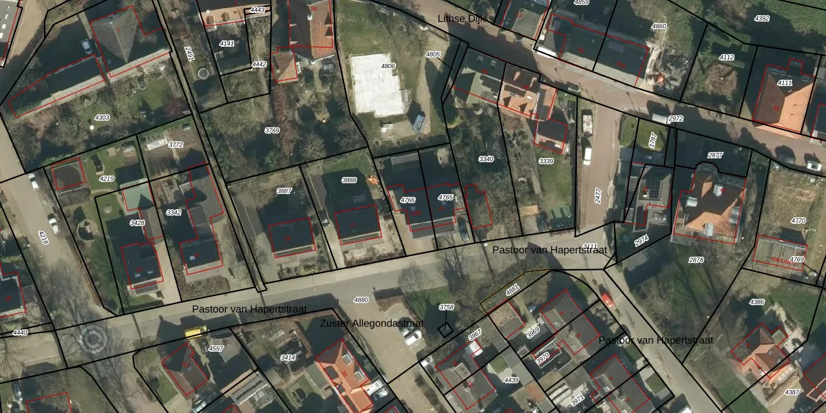 Pastoor van Hapertstraat 15-A is gelegen op kadastraal perceel LIT00A4766. Deze kadastrale aanduiding is uniek en wordt gebruikt door het Kadaster om eigendomsrechten en andere zakelijke rechten vast te leggen. Het perceel maakt onderdeel uit van de kadastrale gemeente Lith.