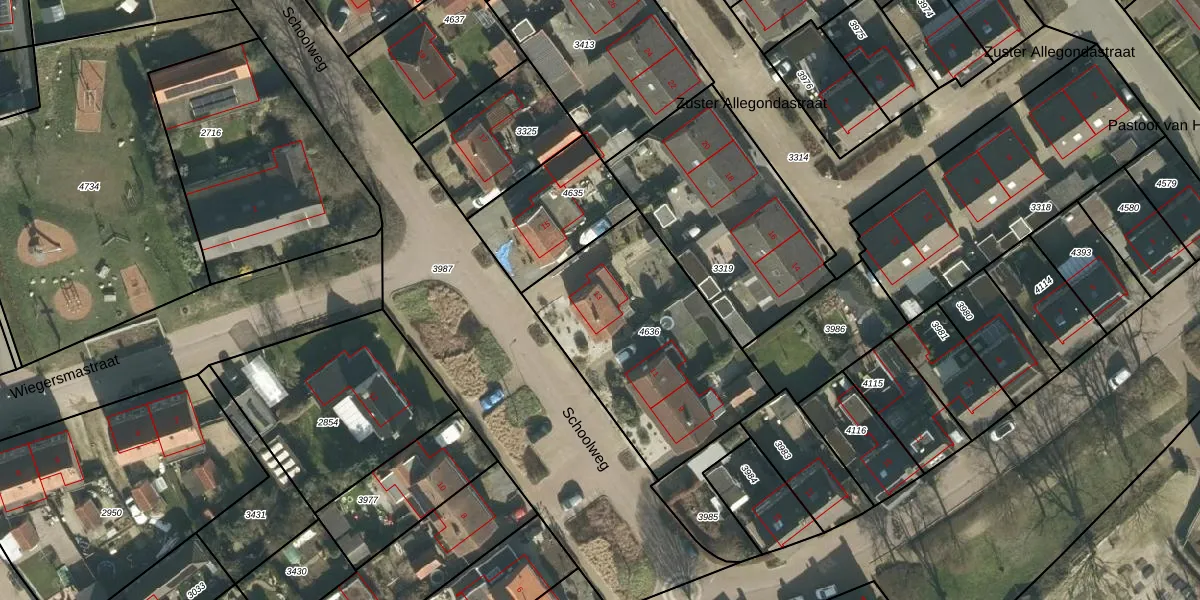 Schoolweg 13 is gelegen op kadastraal perceel LIT00A4636. Deze kadastrale aanduiding is uniek en wordt gebruikt door het Kadaster om eigendomsrechten en andere zakelijke rechten vast te leggen. Het perceel maakt onderdeel uit van de kadastrale gemeente Lith.