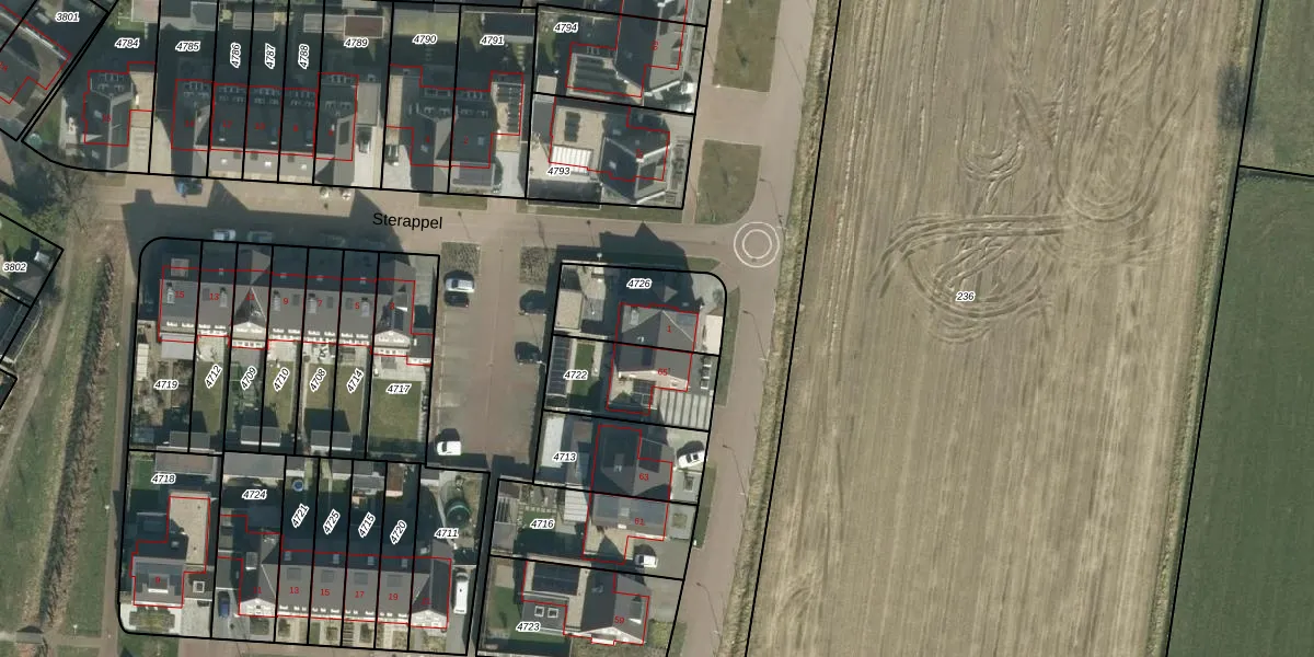 Sterappel 1 is gelegen op kadastraal perceel LIT00A4726. Deze kadastrale aanduiding is uniek en wordt gebruikt door het Kadaster om eigendomsrechten en andere zakelijke rechten vast te leggen. Het perceel maakt onderdeel uit van de kadastrale gemeente Lith.