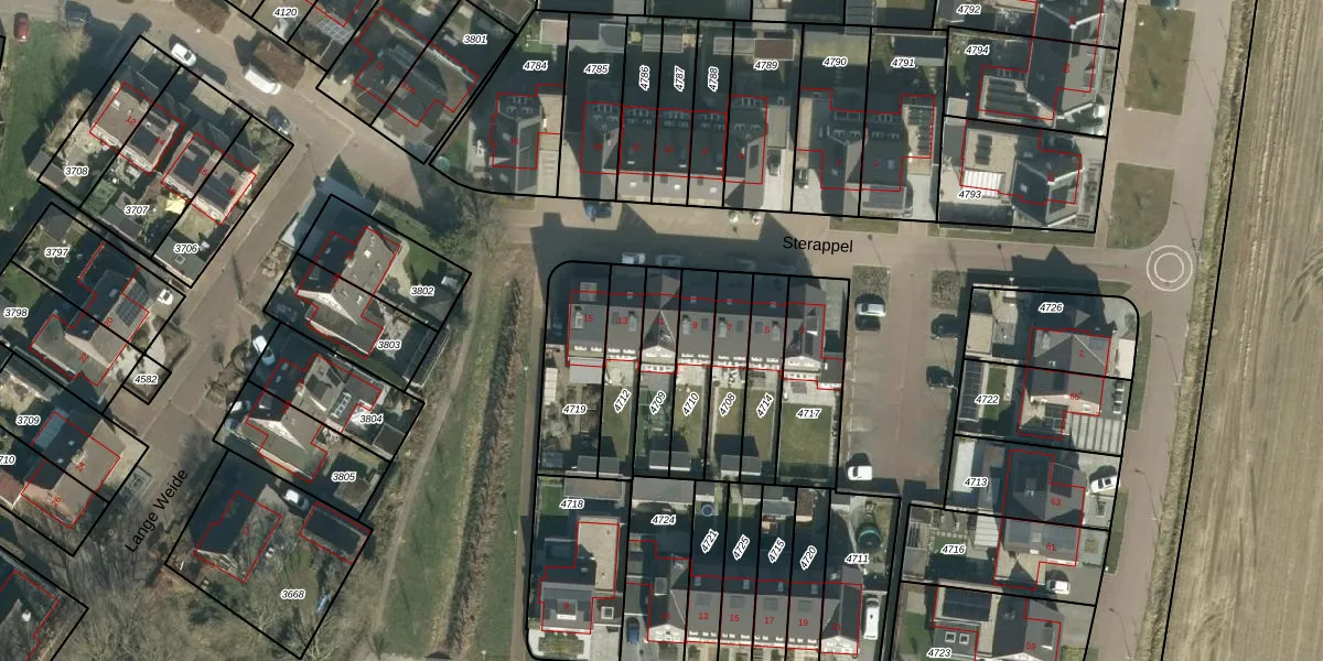 Sterappel 11 is gelegen op kadastraal perceel LIT00A4709. Deze kadastrale aanduiding is uniek en wordt gebruikt door het Kadaster om eigendomsrechten en andere zakelijke rechten vast te leggen. Het perceel maakt onderdeel uit van de kadastrale gemeente Lith.