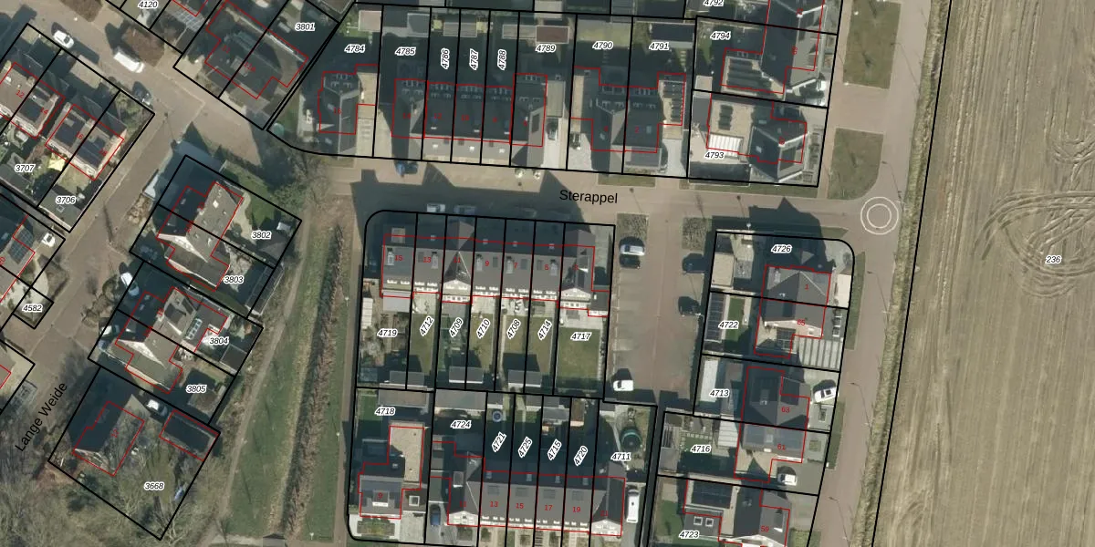 Sterappel 5 is gelegen op kadastraal perceel LIT00A4714. Deze kadastrale aanduiding is uniek en wordt gebruikt door het Kadaster om eigendomsrechten en andere zakelijke rechten vast te leggen. Het perceel maakt onderdeel uit van de kadastrale gemeente Lith.