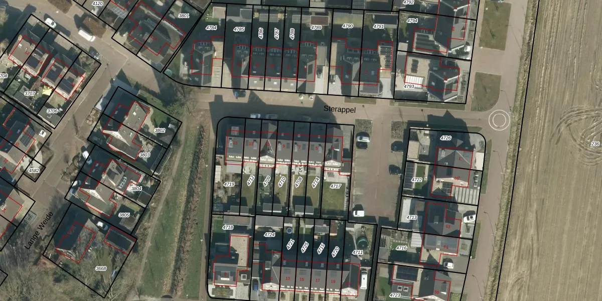 Sterappel 7 is gelegen op kadastraal perceel LIT00A4708. Deze kadastrale aanduiding is uniek en wordt gebruikt door het Kadaster om eigendomsrechten en andere zakelijke rechten vast te leggen. Het perceel maakt onderdeel uit van de kadastrale gemeente Lith.