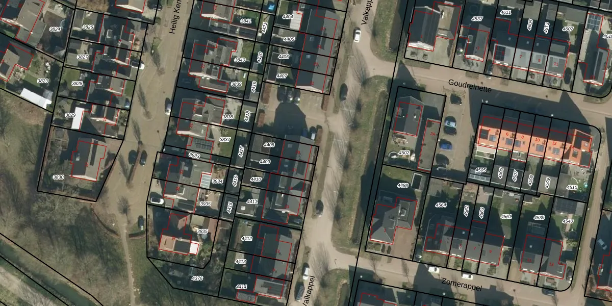 Het perceel waarop Valkappel 19 staat heeft een oppervlakte van 134 m². Dit is een middelgroot perceel. De perceeloppervlakte wordt geregistreerd door het Kadaster. Gedetailleerde informatie over de maten van dit perceel kunt u vinden in het rapport Kadastrale kaart met maatvoering van Valkappel 19.