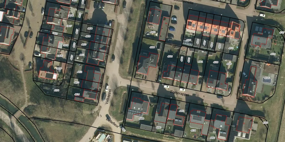 Het perceel waarop Zomerappel 1 staat heeft een oppervlakte van 463 m². Dit is een groot perceel. De perceeloppervlakte wordt geregistreerd door het Kadaster. Gedetailleerde informatie over de maten van dit perceel kunt u vinden in het rapport Kadastrale kaart met maatvoering van Zomerappel 1.