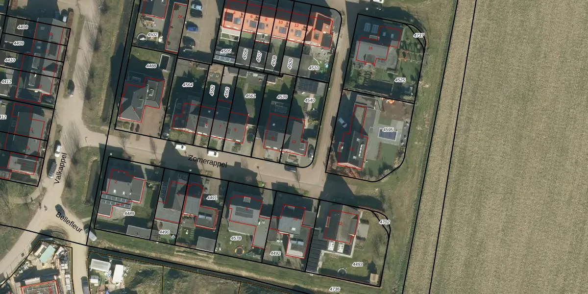 Zomerappel 13 is gelegen op kadastraal perceel LIT00A4540. Deze kadastrale aanduiding is uniek en wordt gebruikt door het Kadaster om eigendomsrechten en andere zakelijke rechten vast te leggen. Het perceel maakt onderdeel uit van de kadastrale gemeente Lith.