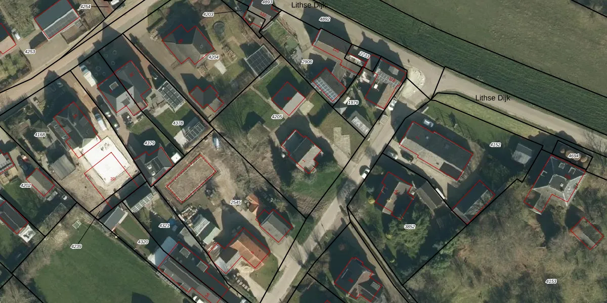 Het adres is gelegen op perceel 4205 in de sectie A en de kadastrale gemeente Lith. De kadastrale aanduiding is aldus LIT00-A-4205. Het perceel is kleiner dan gemiddeld in Lith. Het perceel is 1379 m² groot, terwijl het gemiddelde ligt op 1,1 ha. Het kleinste perceel in de kadastrale gemeente is 1 m² groot. De grootste perceeloppervlakte is 1,30 km². Op het perceel zijn 2 adressen aanwezig. De laatste wijziging in het de Basisregistratie Kadaster (BRK) was op 07-12-2011.