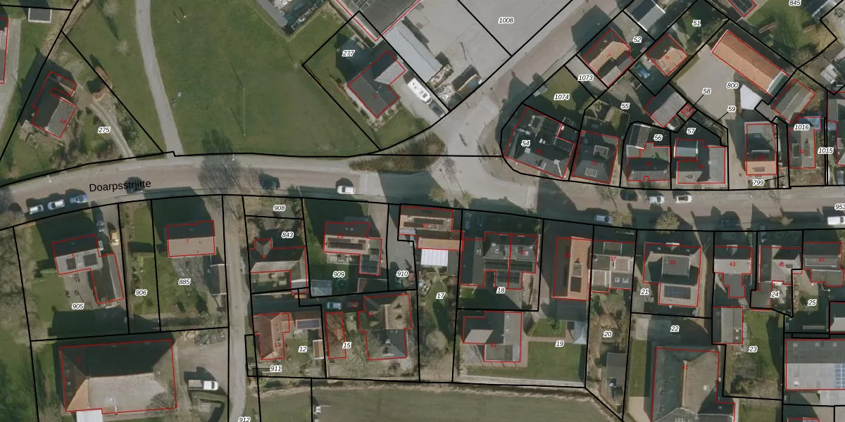 Het perceel waarop Doarpsstrjitte 27 staat heeft een oppervlakte van 435 m². Dit is een groot perceel. De perceeloppervlakte wordt geregistreerd door het Kadaster. Gedetailleerde informatie over de maten van dit perceel kunt u vinden in het rapport Kadastrale kaart met maatvoering van Doarpsstrjitte 27.